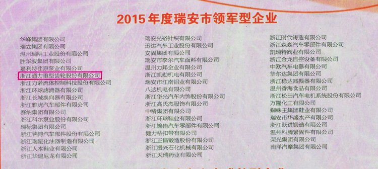 為鼓勵先進,樹立典型,瑞安市委、市政府在3月25日召開的全市經(jīng)濟工作會議上,授予浙江通力2015年度瑞安市領軍型企業(yè)并頒發(fā)獎牌。